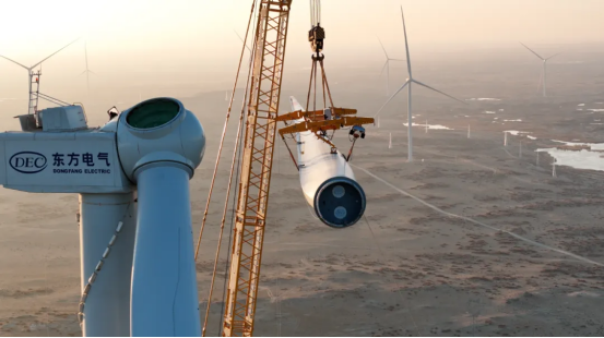 该项目总装机容量达100万千瓦,共安装85台10兆瓦和18台8.35兆瓦风电机组,构建了“风-储-输”一体化清洁能源系统。项目创新应用160米桁架塔,为低风速、高风切变区域的风能开发储备关键技术。